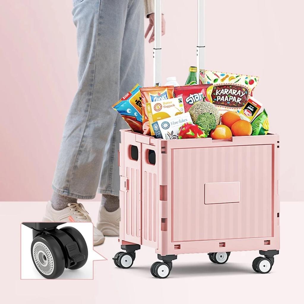 حجم عملي يتسع لـ 50 كيلو، مزودة بـ 4 عجلات لسهولة الحركة والاستخدام، قابلة للطي للحجم بدون اخذ مساحة كبيره.