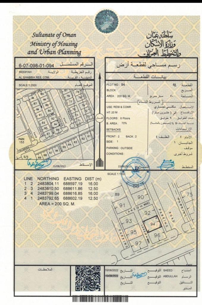 رقم الارض : 94