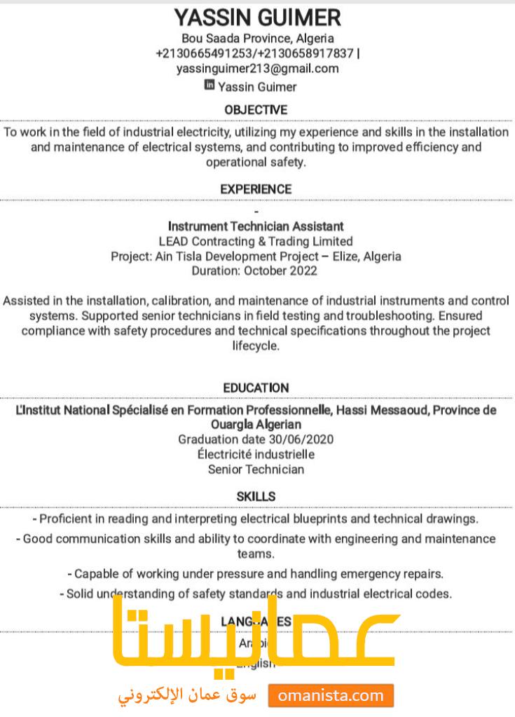 أبحث عن فرصة عمل في مجال الهندسة الكهرباء