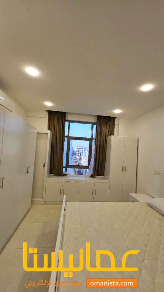 الشقة بالطابق الخامس توجد بها غرفتين نوم و حمامين و صالة و مطبخ و مخزن و بلكونة مؤثثة بالكامل