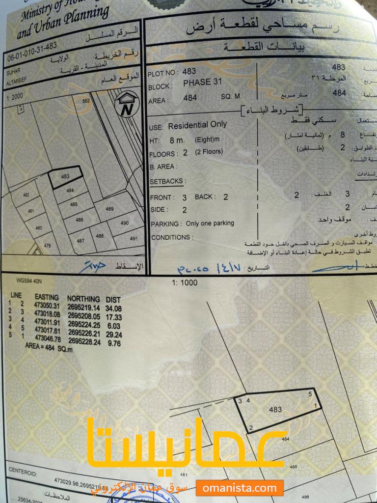 للبيع ارض سكنية مساحة ٤٨٤ متر الموقع على شارع المحمودي الخدمات موجودة في الموقع كما يوجد منزل قائم بالقرب من الأرض .