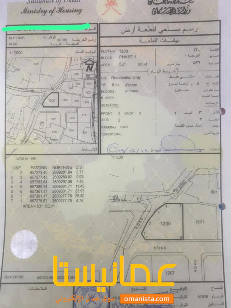 *مباشر من المالك* موقع استراتيجي في قلب مسقط روي ملاصقه لبنايه سكنيه فيها نظام شقق وتبعد عن مستشفى النهضه ومستشفى بدر السماء ١ كم وعن نيستوهايبرماركت ٩٣٠ م وعن مستشفى ابولو مسقط ٢٨٠ م موقع جدا ممتاز السعر ٦٠ الف صافي للمالك +٣٪ العموله ٠٠١