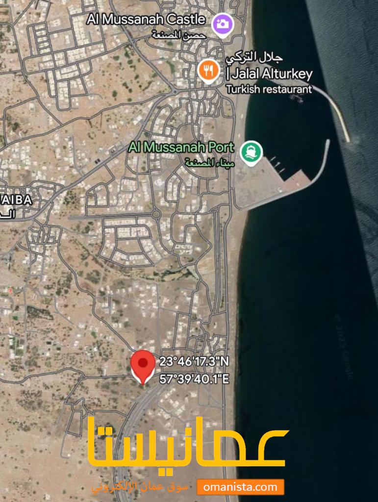 مساحة الارض 5266 م² كونر اول خط من شارع خط الباطنة ،تصلح لتحويلها الى سكني تجاري ،موقعها يصلح لإقامة محطة وقود ،بالقرب من مسجد المصينعة ومن شاطئ ومقابل خط الباطنة الساحلي ، فرصة للأستثمار ، الارض مستوية وحولها المنازل القائمة و اخرى قيد الانشاء ، الخدمات متوفرة .