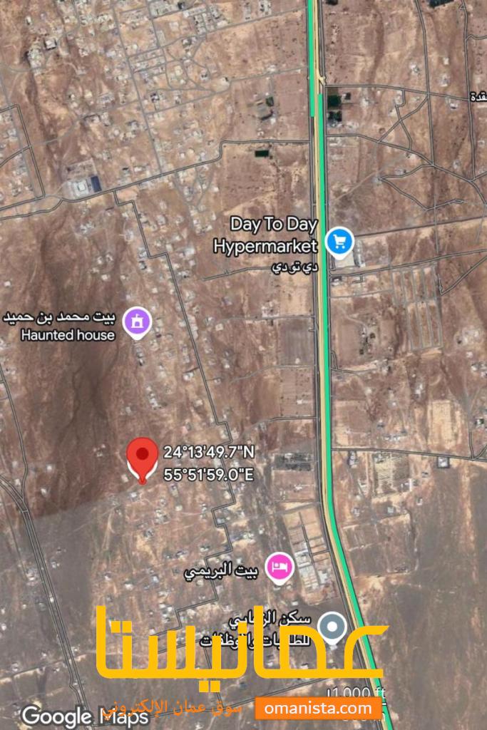 مساحة الارض 723 م² كونر مفتوحة من ثلاث جهات على شارعين وسكة ،بجانب من مسجد سعد بن ابي وقاص ،ولا تبعد كثيراً من لولو هايبر ماركت ومن جامعة البريمي وقريبة من شارع المزدوج ، فرصة للأستثمار ، الارض مستوية وحولها بعض المنازل القائمة و اخرى قيد الانشاء ، الخدمات متوفرة .