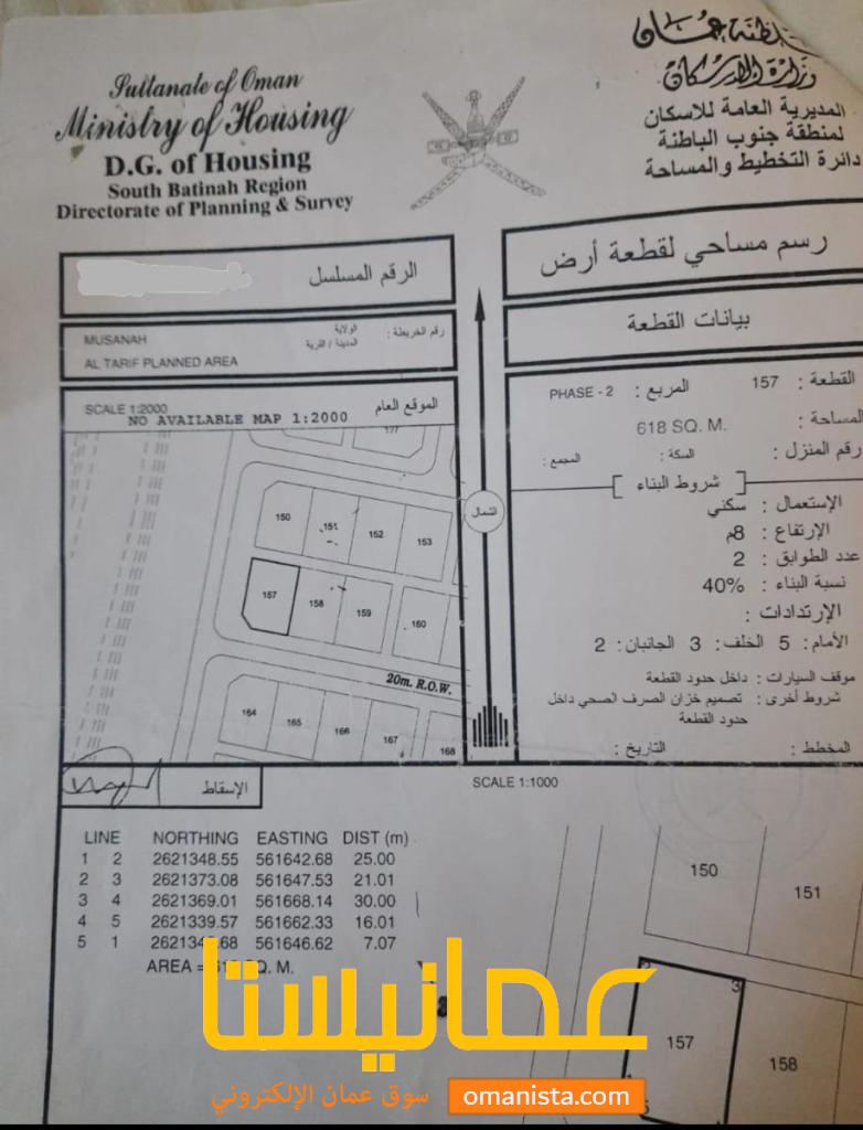 للبيع ارضان شبك ممتازة في المصنعة الطريف الجنوب زاوية – وسطية ، رقم القطعة (157-158)
