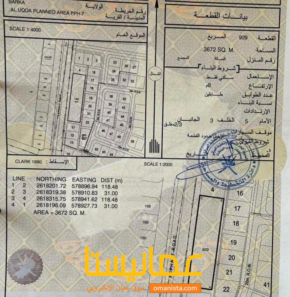 مساحة الأرض:3672 م