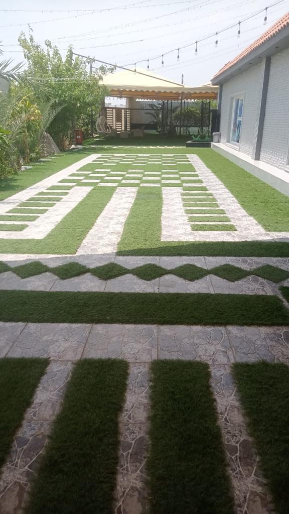 وكذلك مجلس صغير مع غرف نوم وصالة طعام ومطبخ ومسبح ومساحة كبيرة لعمل طاولات خارجية وألعاب كبيرة للاطفال