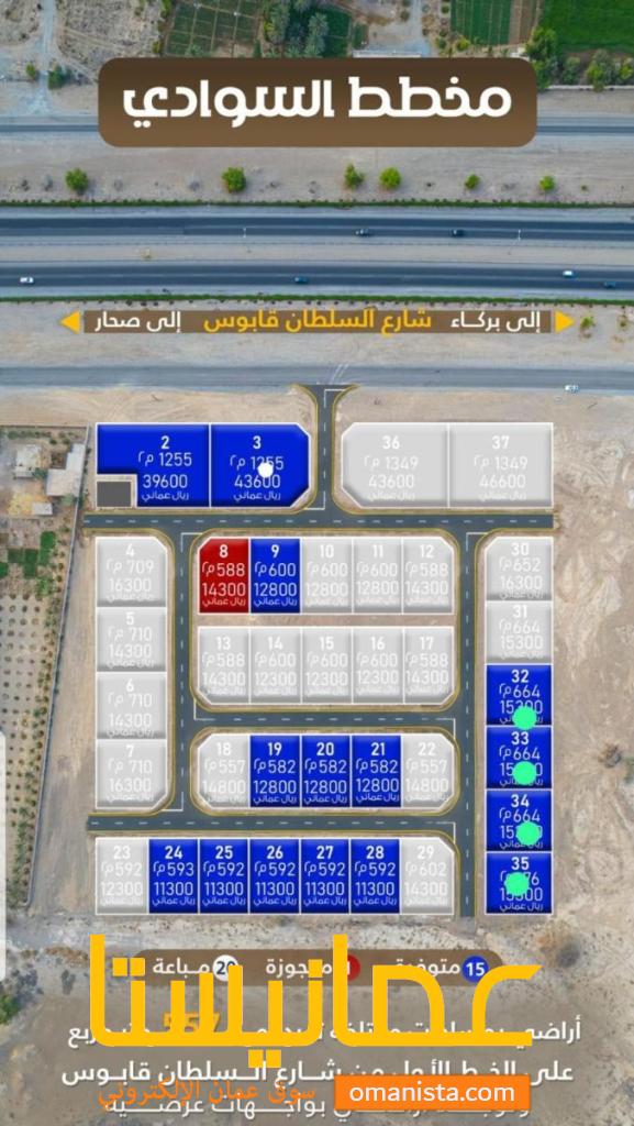 للبيع أراضي سكنية مميزة في مخطط السوادي جنوب بولاية بركاء .