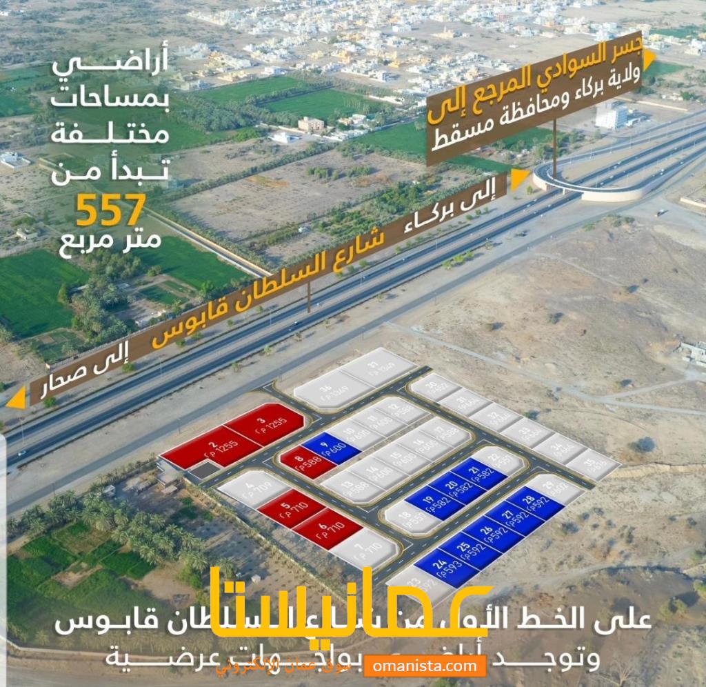 يقع المخطط في موقع مميز على الخط الأول من الطريق العام ، يبعد مسافة 10د من مركز ولاية بركاء ، مدخل مباشر من شارع السلطان قابوس إلى المخطط، يتكون المخطط من 36 ارض سكنيه ، مساحات مستوية ونظيفة ، جميع الأراضي ممتازة جدا ، شوارع مرصوفة بالكامل ، الأراضي جاهزة للبناء الحالي ، توفر جميع الخدمات ( ماء + كهرباء + شوارع + انارات).