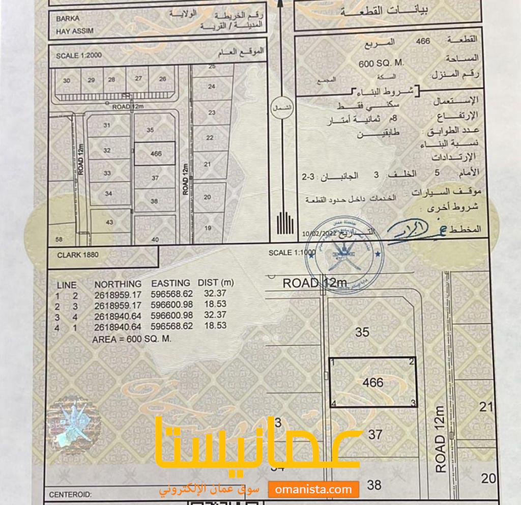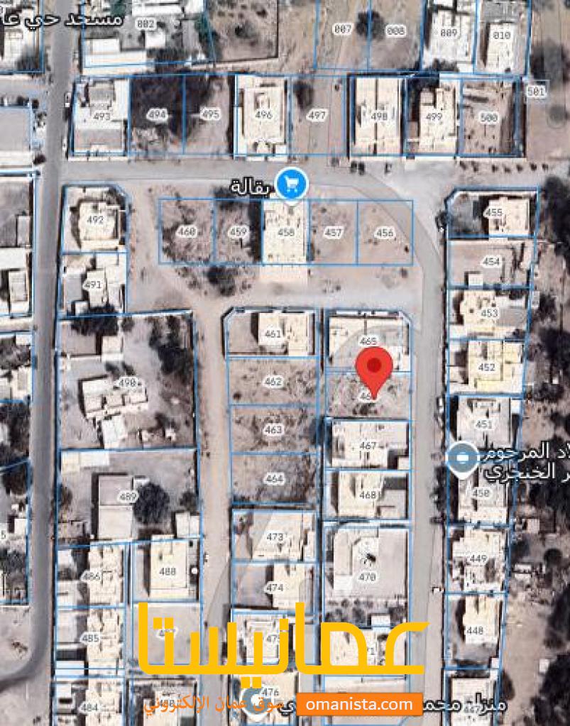 للبيع ارض سكنية ممتازة في بركاء حي عاصم ، رقم القطعة (466) .