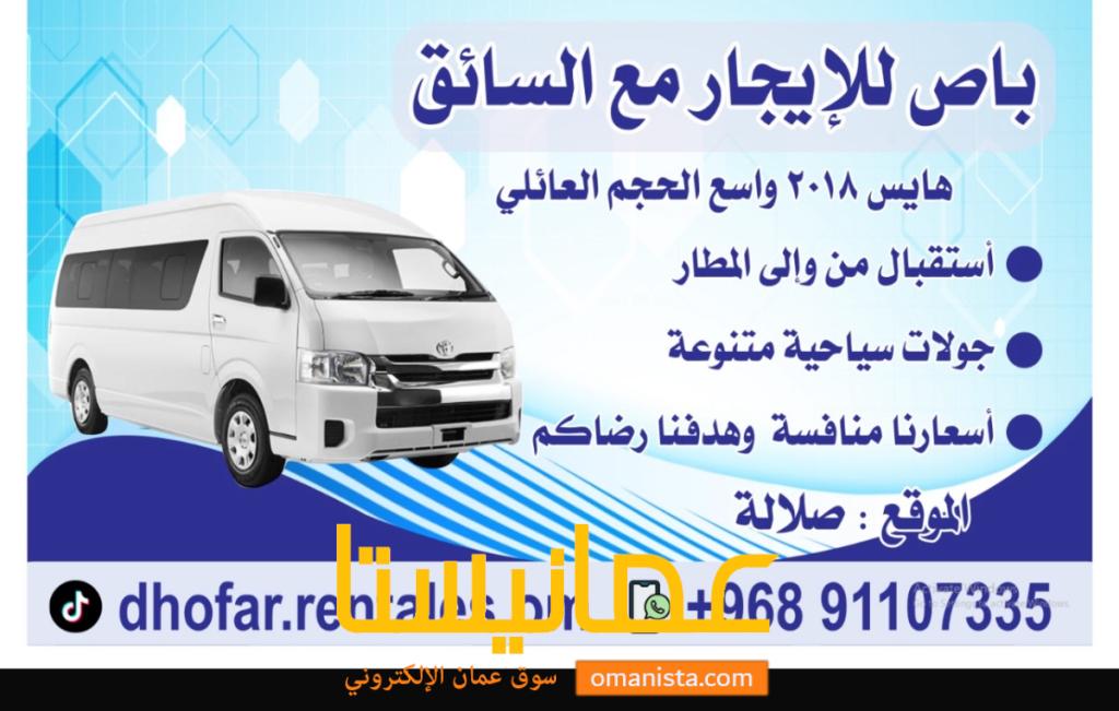 باص تويوتا حديث وواسع للإيجار مع السائق في موسم خريف ظفار | سوق عُمانيستا 2026