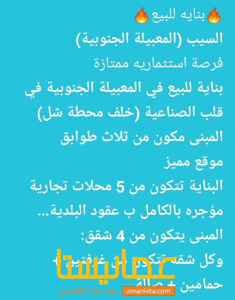 *بناية للبيع في المعبيلة الجنوبية في قلب الصناعية (خلف محطة شل)*