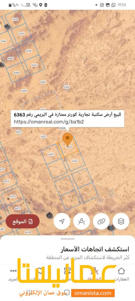 _ للبيع ارض سكنية تجارية ، في البريمي ، بالقرب من منازل قائمة ، رقم القطعة (6363) .