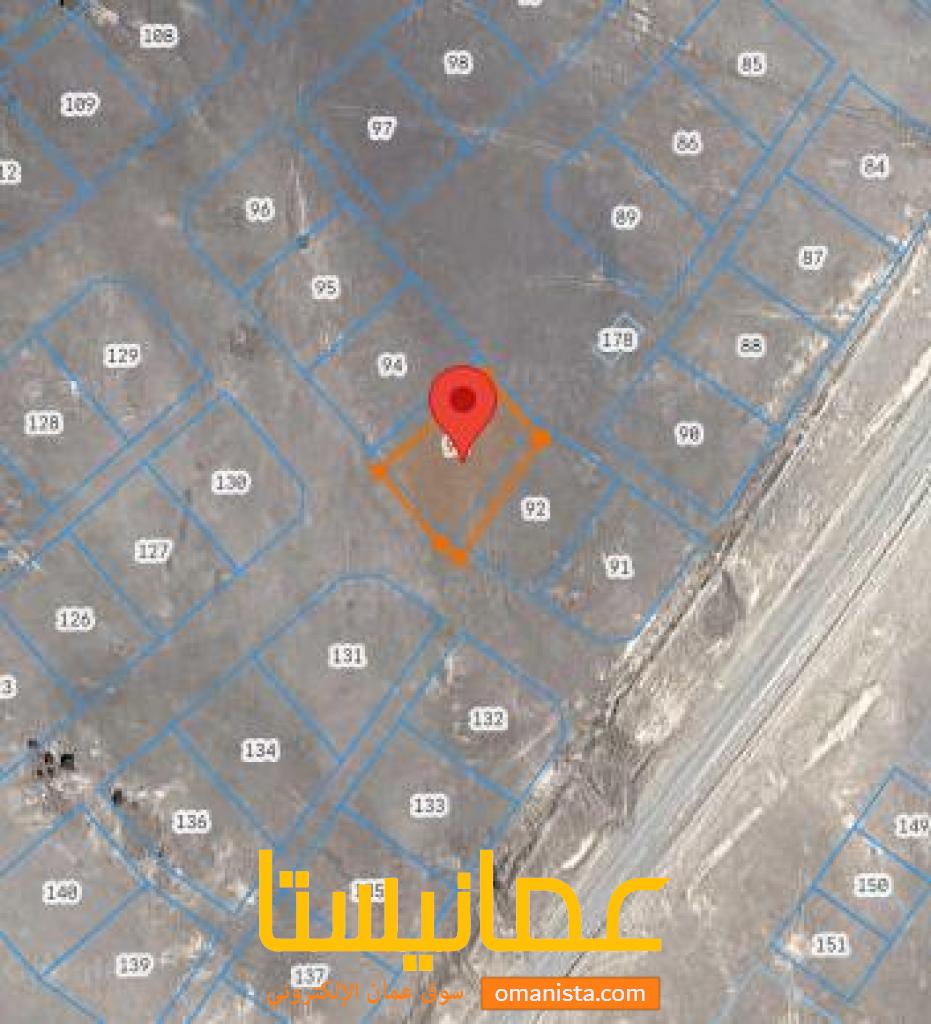 للبيع ارض سكنية ممتازة في نزوى قرية المضيبي، رقم القطعة (93) .