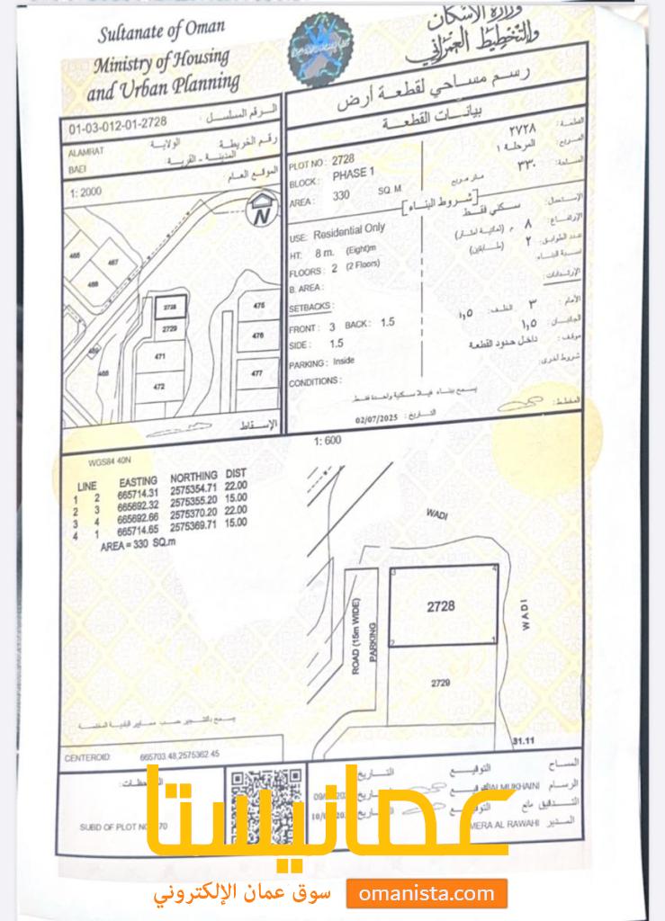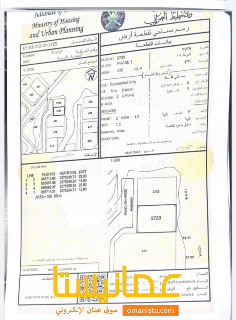 للبيع ارضين شبك مميزة في العامرات مدينة النهضة الامتداد الأول ، رقم القطعة (2728-2729) .