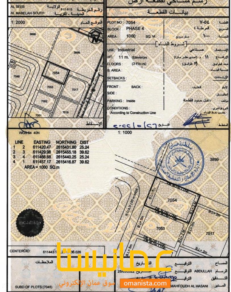 للبيع ارض صناعية مميزة في المعبيلة الجنوبية ، رقم القطعة (7054) .