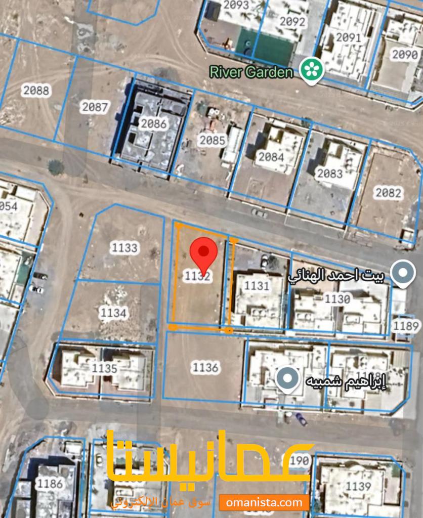 للبيع ارض سكنية ممتازة في بركاء الهرم الشمال زاوية ، رقم القطعة (1132) .