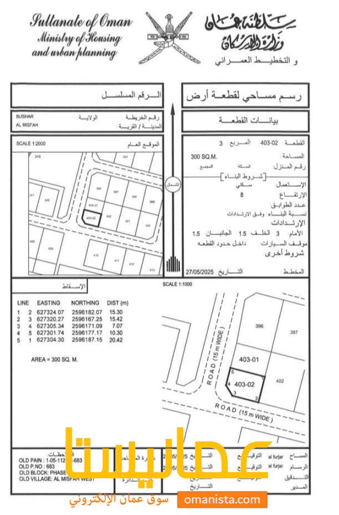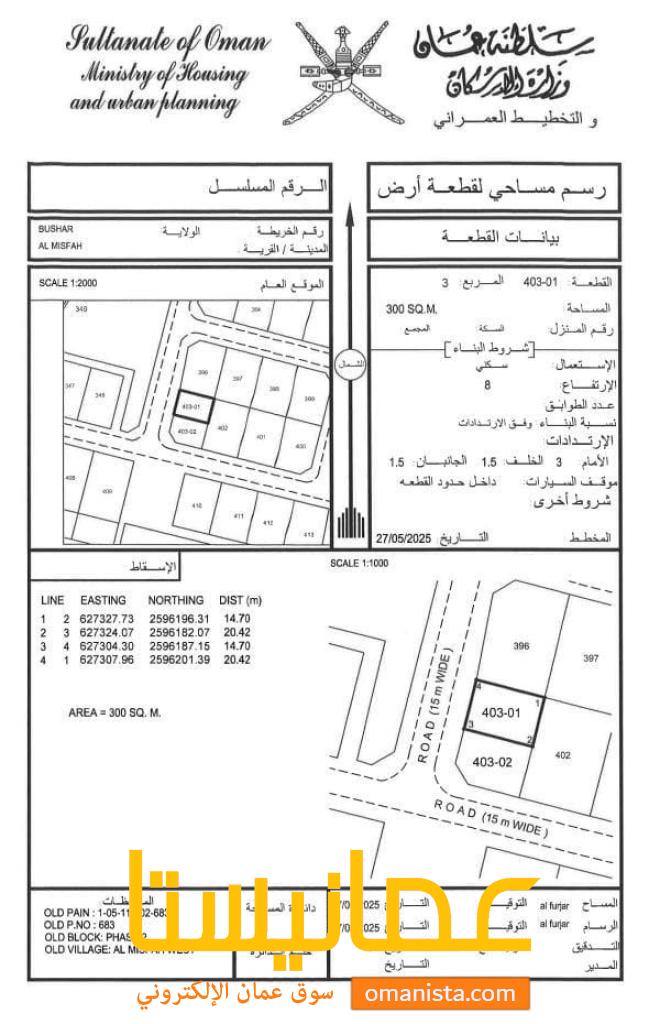 للبيع ارضان شبك ممتازة في بوشر المسفاة الغرب كونر وسطية رقم القط | سوق عُمانيستا 2026