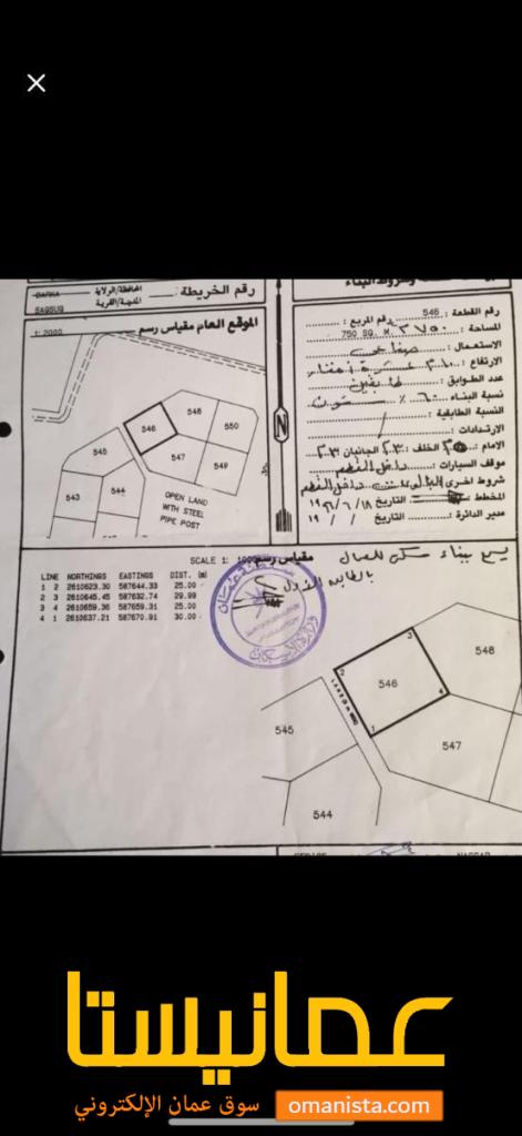 للبيع ارض صناعية في بركاء سقسوق زاوية ، رقم القطعة (546) .