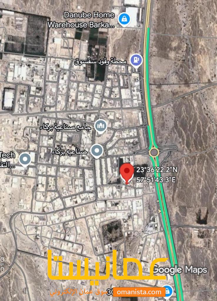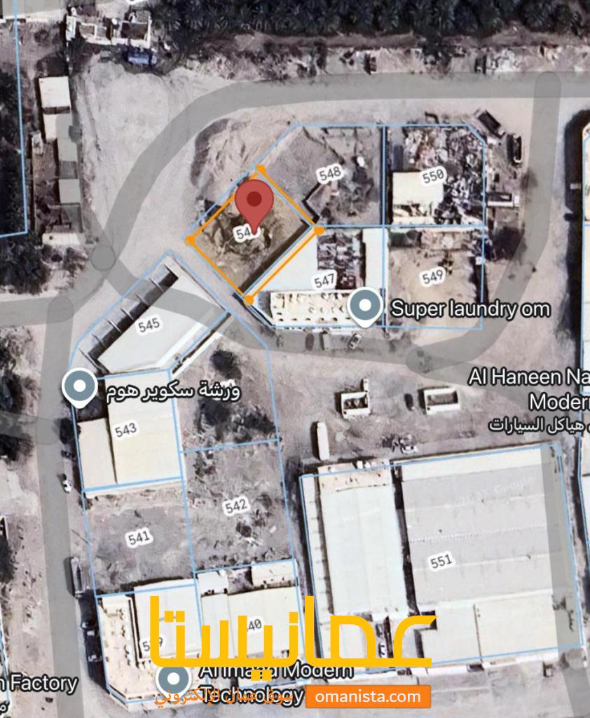 مساحة الأرض 750م² زاوية ،بالقرب من جامع صناعية ومن دوار سقسوق صناعية وبالقرب من محطة نفط عمان ، الارض مستوية و نظيفة وسط من المنشآت الصناعية القائمة سهل الوصول اليها و الخدمات متوفرة .