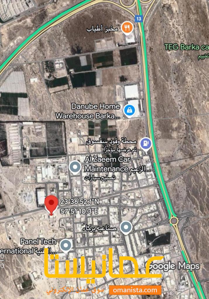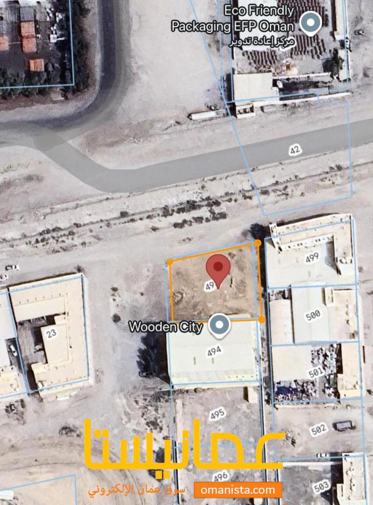 مساحة الأرض 1216م² كونر مفتوحة من ثلاث جهات على شارعين وسكة ،بالقرب من جامع صناعية ومن دوار سقسوق صناعية وبالقرب من محطة نفط عمان ، الارض مستوية و نظيفة وسط من المنشآت الصناعية القائمة سهل الوصول اليها و الخدمات متوفرة .