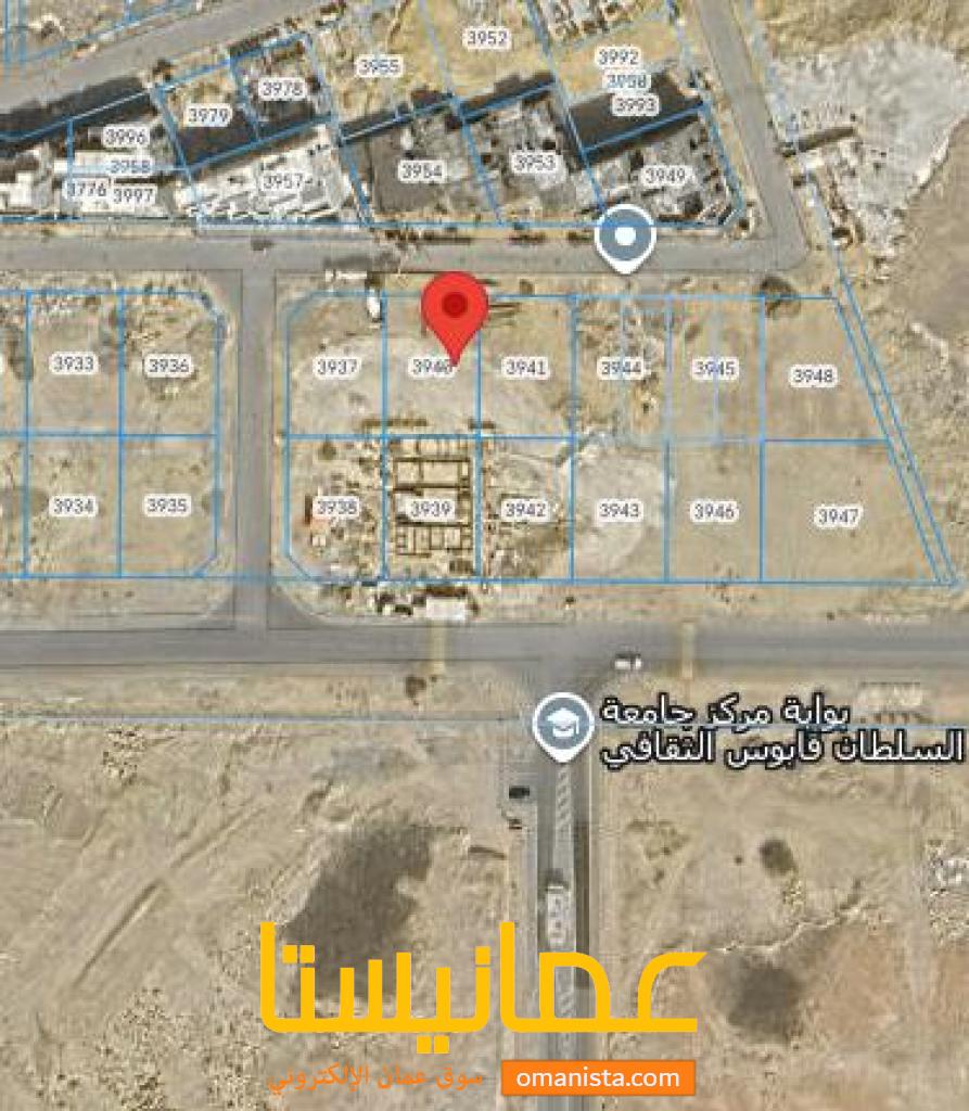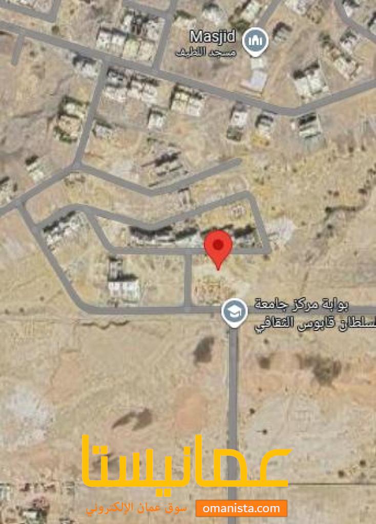 مساحة الأرض 300 م² ، وسطية على شارع مرصوف ، الخط الثاني من الشارع الرئيسي ، قريبة من مدخل جامعة السلطان قابوس ، موقع مميز متكامل سهولة الدخول والخروج للأرض ، فرصة للأستثمار ، الارض مستوية وحولها بعض المنازل والقائمة وأخرى قيد الإنشاء ، الخدمات متوفرة .