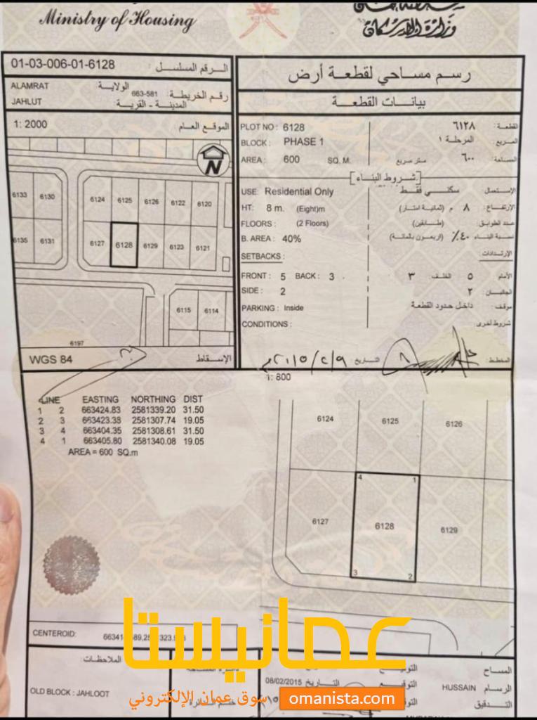 ارض سكنية مميزة في العامرات جحلوت رقم القطعة 6128 | سوق عُمانيستا 2025