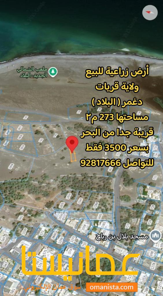 ارض زراعية قريب البحر في دغمر مساحتها 273 م٢ | سوق عُمانيستا 2025