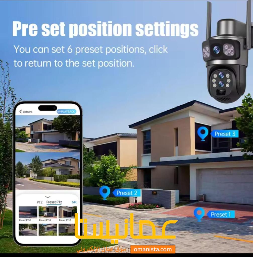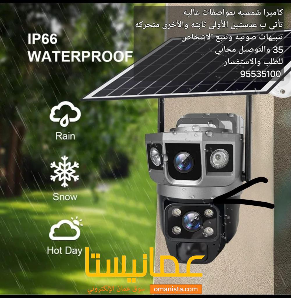 مع كاميرات مراقبة بالطاقه الشمسيه بمواصفات وتقنيات عاليه ودقة الرؤيا واضحه جدا تاتي بعدستن الأولى ثابته والأخرى متحركه بدرجه 360