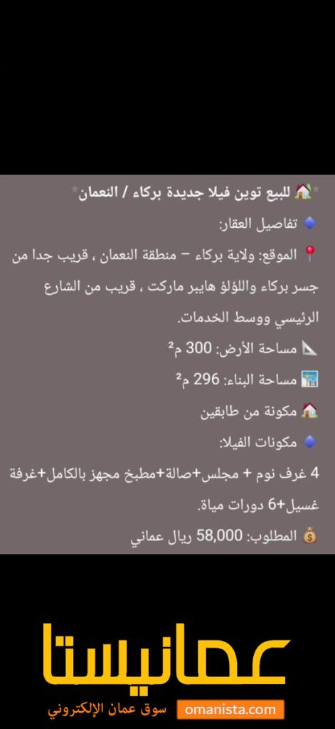 *🏡 توين فيلا جديدة بركاء / النعمان*