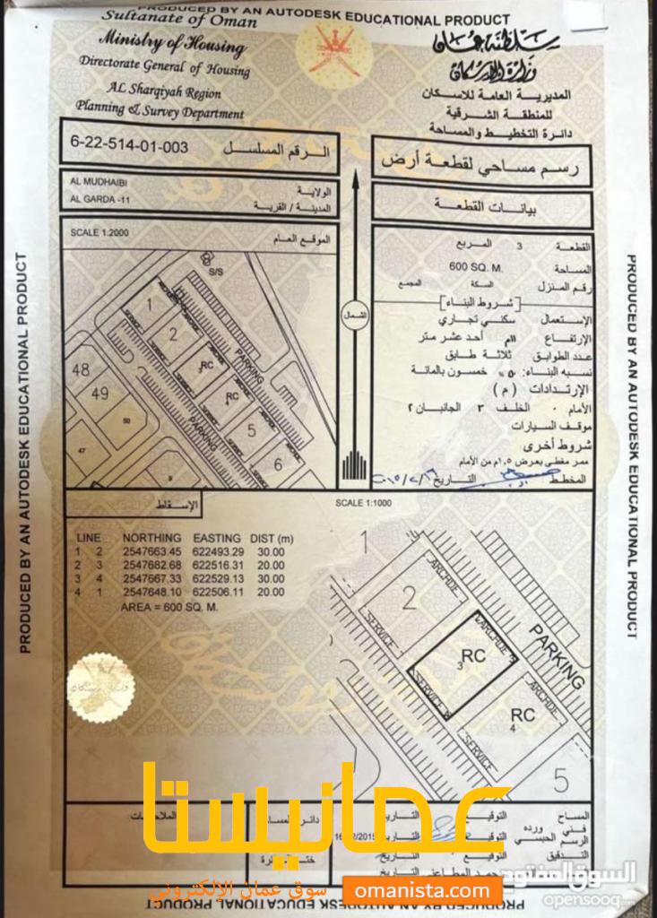 أرض سكنيةتجارية للبيع في الجرداء موقع مميز وقريب من الخدمات | سوق عُمانيستا 2026
