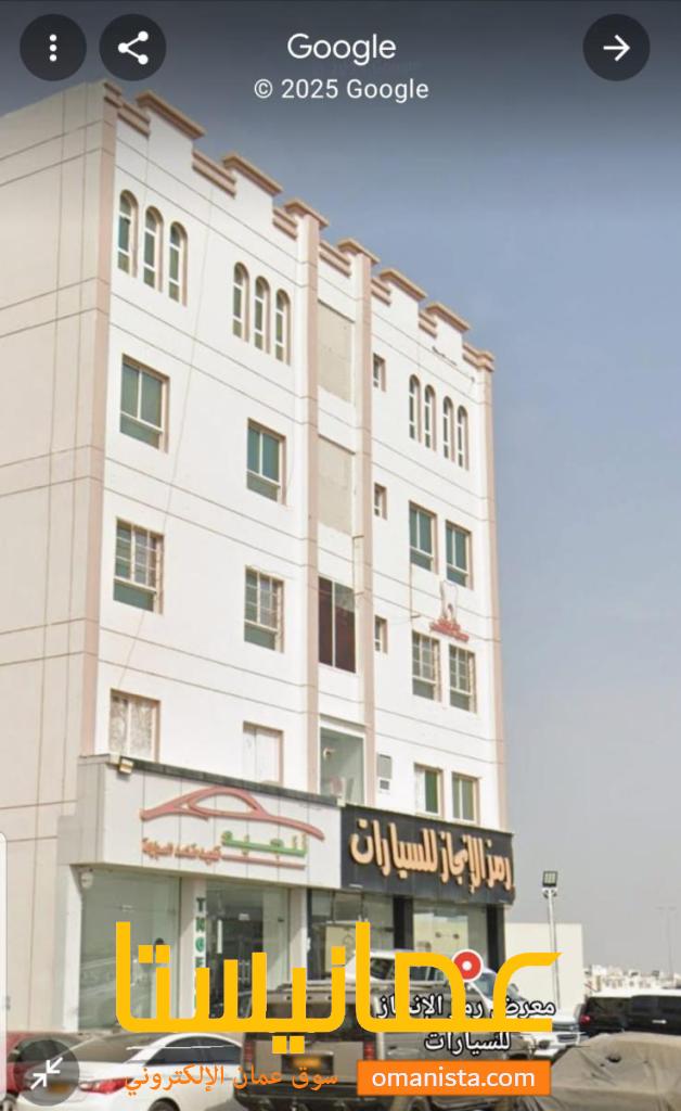 للايجار شقة ممتازة على اول خط من شارع المعارض في المعبيلة السابعة مقابل الصناعيه بجوار بنك ظفار الاسلامي من جهة الشرق و نستوا الجديد من جهة الغرب .