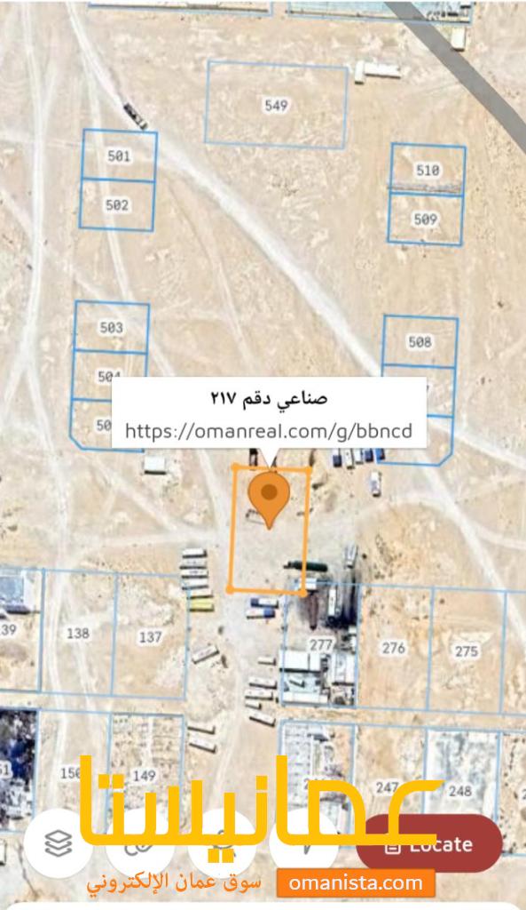 ✨رقم القطعة: 217,مساحة الأرض 1500متر،وسطية،البناء 60٪،إستعمال صناعي خفيف.