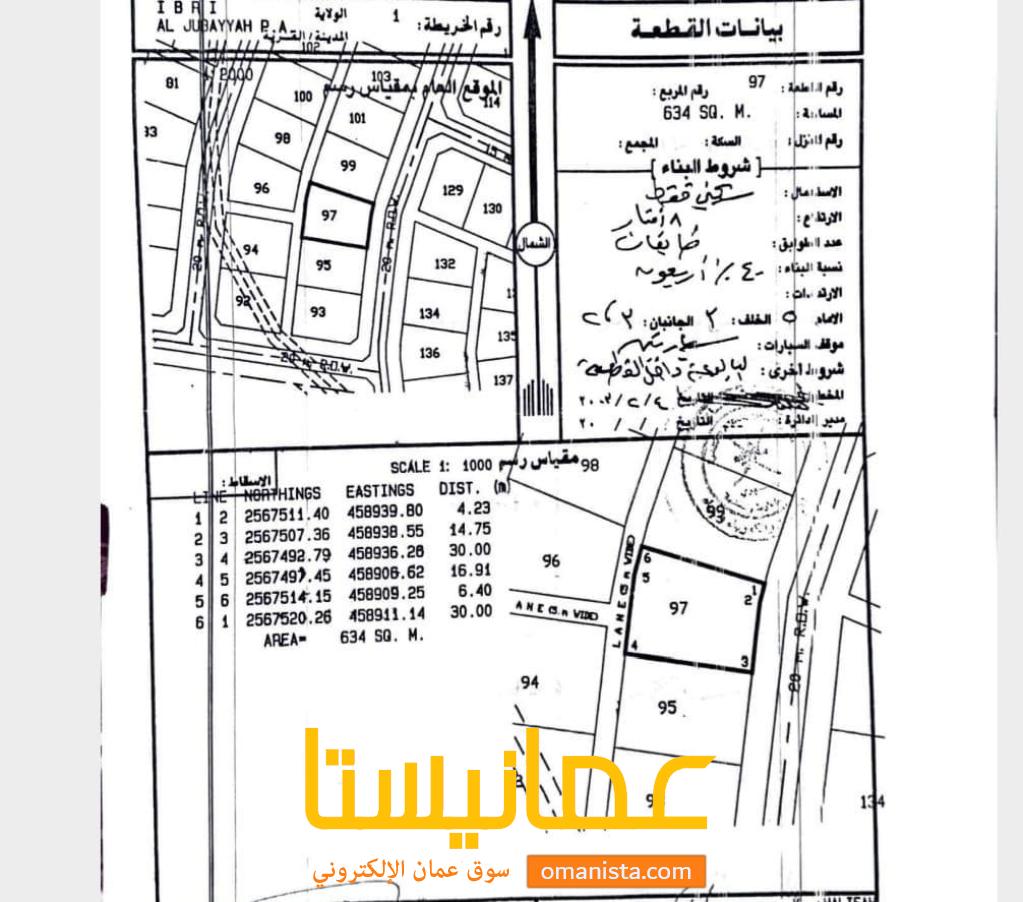 ارض سكني في موقع مميز للبيع عبري | سوق عُمانيستا 2026