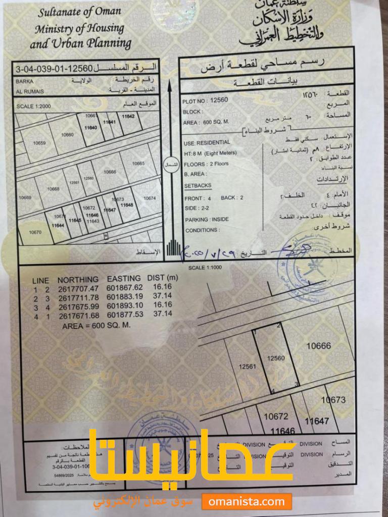 للبيع ارضين شبك ممتازة في بركاء الفليج المعمورة ، رقم القطعة (12560-12561) .