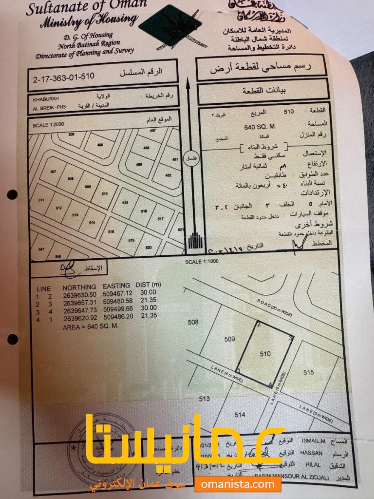 ارضين شبك في البريك رقم ٥٠٩ و ٥١٠ مطلوب ١١٥٠٠ قابل لتفرض بالمعقو | سوق عُمانيستا 2025