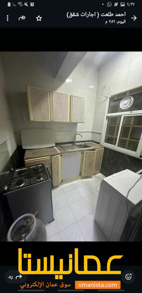 للايجار غرفه وصاله ومطبخ وحمام وبلكونه شامل مياه وكهرباء وانترنت وصيانه