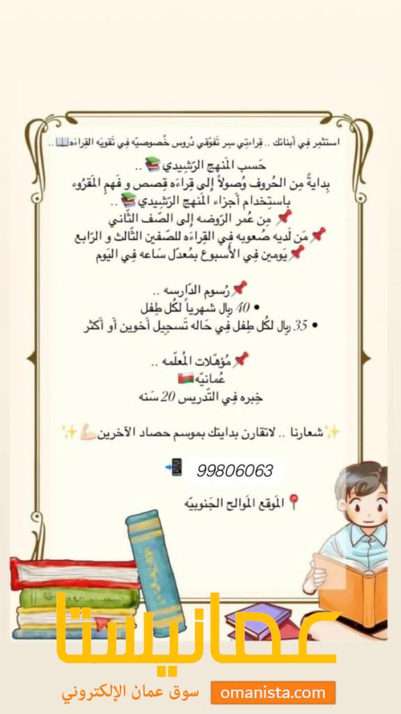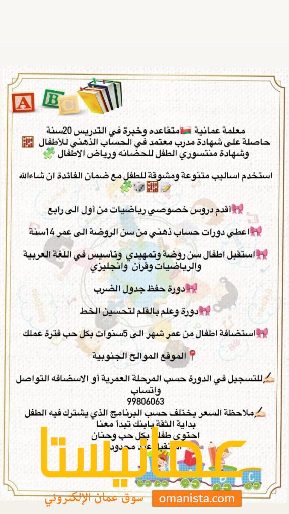 دورة حساب ذهني ودورة حفظ جدول الضرب ودورة تحسين الخط ودورة قراءة وتأسيس طلاب الروضة والتمهيدي والتجهيزي في منزلي الفترة الصباحية
