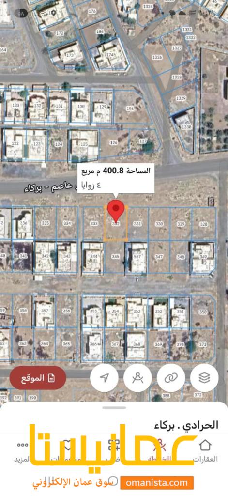 للبيع أرض سكنية ممتاز في بركاء الحرادي ،