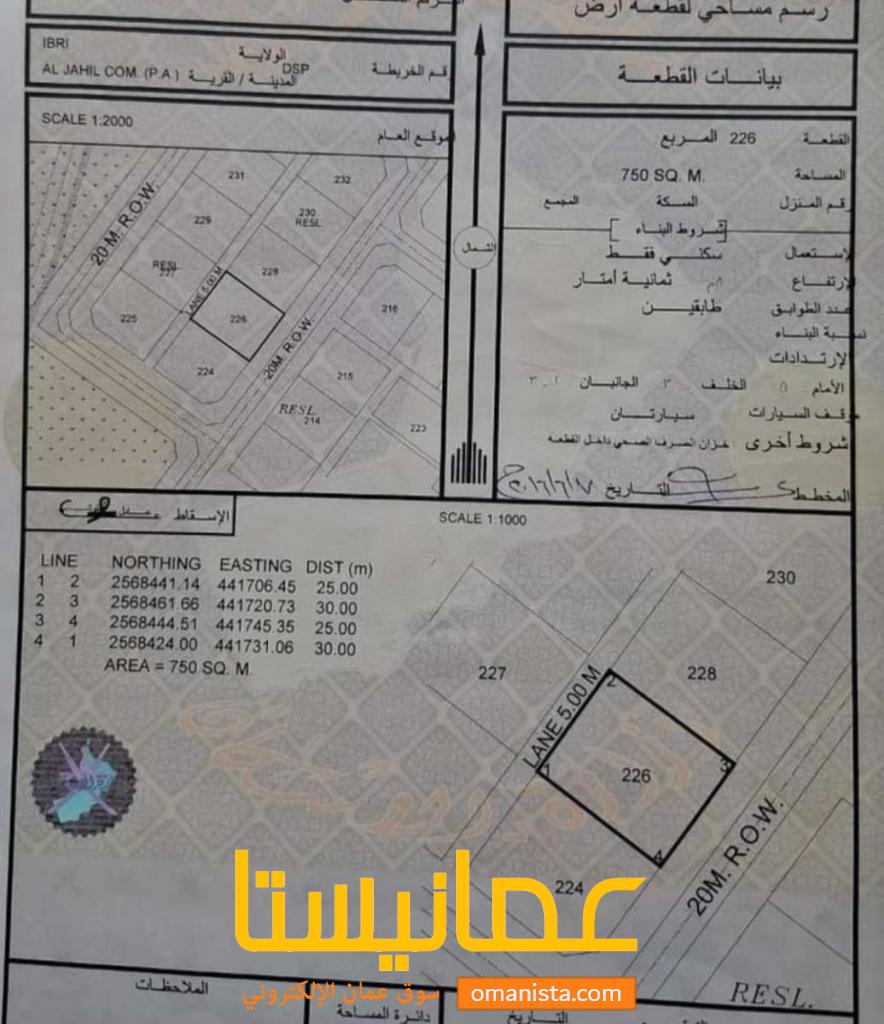 الارض ممتازه وسطيه مفتوحه من الامام والخلف قريب من مستشفى عبري وقريب من محطه نفط عمان ودوار المستشفى وقريبه ملازقه لمنازل قائمه وتصلح لبناء توين فله او سكن لطالبات او ممرضات المستشفى.