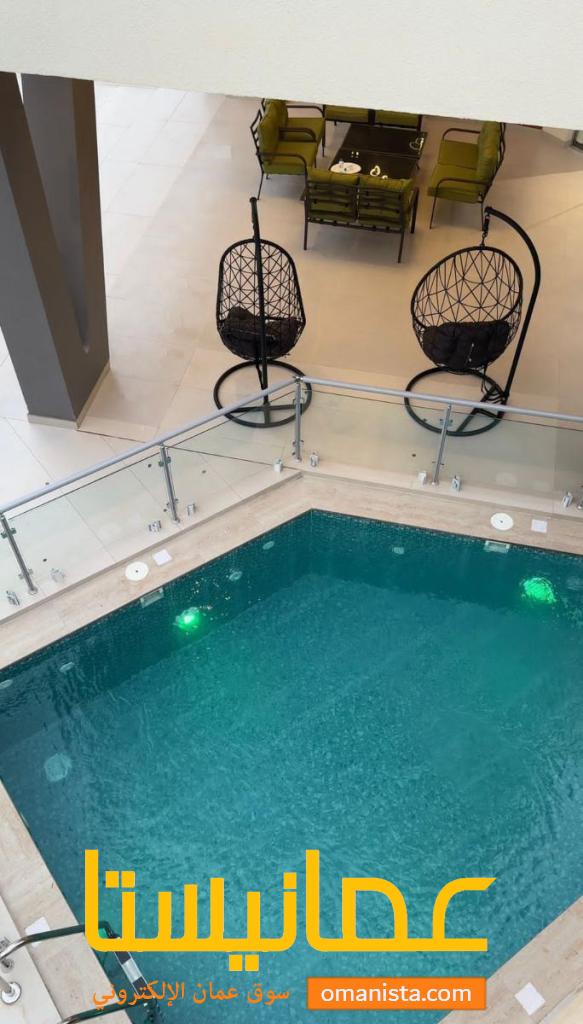 🛋 صالة داخلية فخمة مطلة على المسبح + طاولة طعام متسعة.