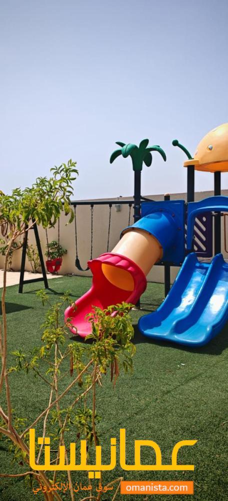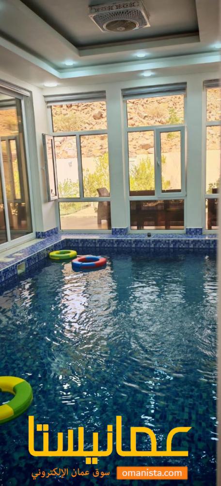 غرفتي نوم ارضيه مع ٣ دورات مياه صالة كبيره مع مطبخ اوروبي وصالة تلفزيون مع حوض سباحه داخلي مغلق. جلسه خارجيه ومظله خارجيه العاب اطفال غرفه خارجيه مع دورة مياه مخزن علوي
