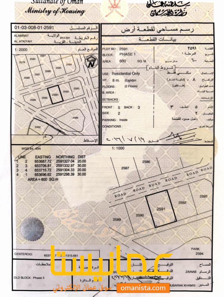 للبيع ارض سكنية ممتازة في العامرات العتكية 3 وسطية | سوق عُمانيستا 2026