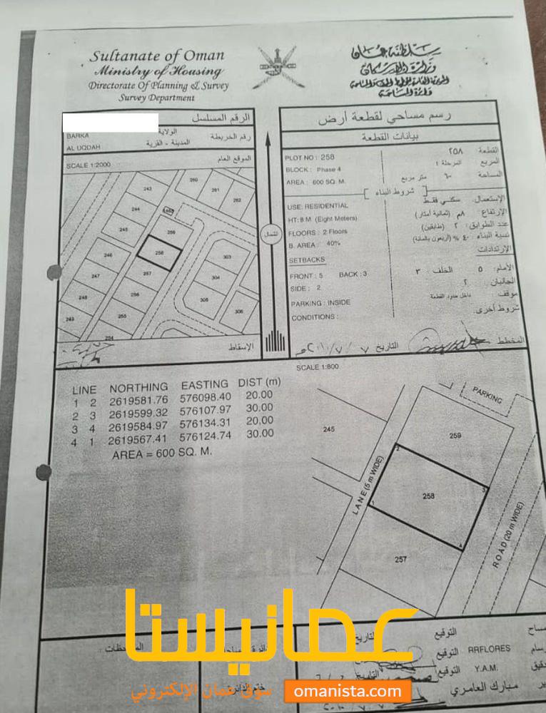 للبيع ثلاث أراضي شبك ممتازة في بركاء العقدة الرابعة وسطيات رقم القطعة (257\256\258)