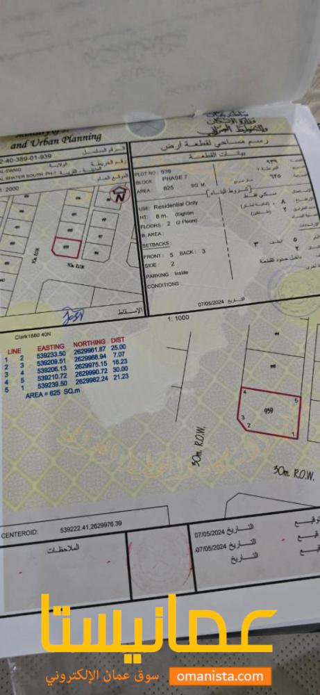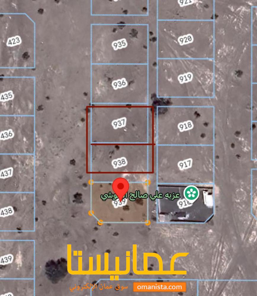 للبيع ثلاث اراضي شبك في بركاء الشاطر 7 كونر – وسطية – وسطية ، القطعة (939-938-937) .