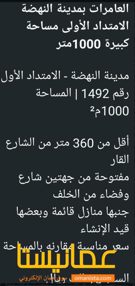 *للبيع أرض سكنية في ولاية العامرات بمدينة النهضة الامتداد الأولى مساحة كبيرة 1000متر*