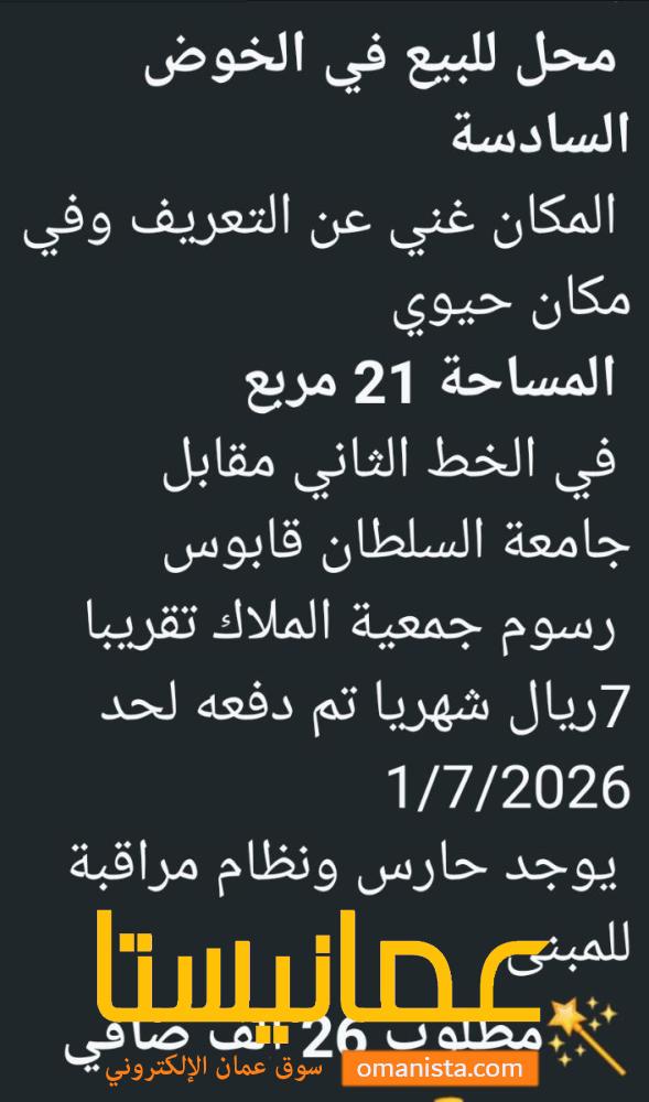 *محل للبيع في الخوض السادسة*