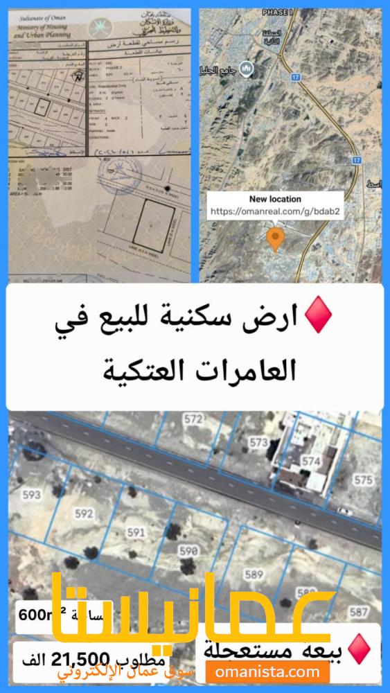 🏡 أرض سكنية للبيع – العامرات / العتكية – على شارع قار