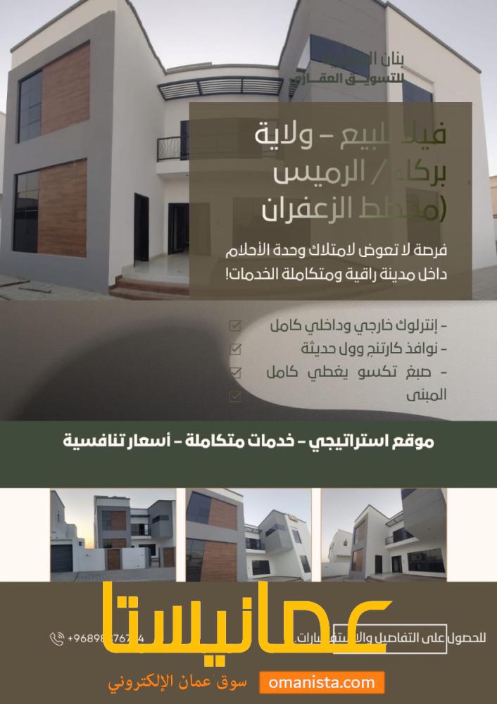 🏡 فيلا للبيع – بركاء / الرميس (مخطط الزعفران)