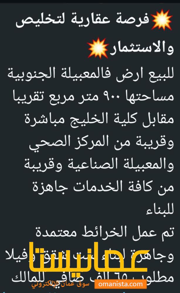 مقابل كلية الخليج مباشرة وقريبة من المركز الصحي والمعبيلة الصناعية وقريبة من كافة الخدمات جاهزة للبناء
